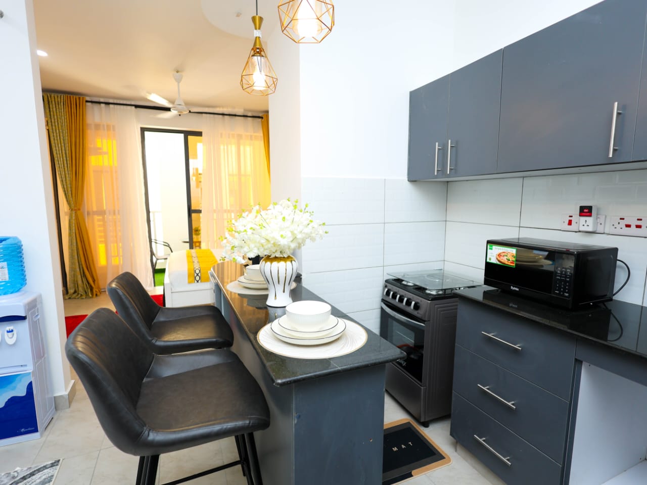 A modern and spacious executive studio in Nyali, Mombasa. Just a 2-minutes walk to the beach. Perfect for a relaxing getaway with friends.